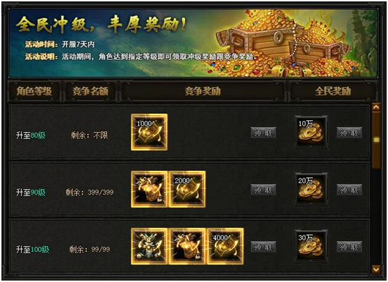 【活动内容】活动期间,等级达到指定等级即可领取冲级大奖,数量有限,先到先得。