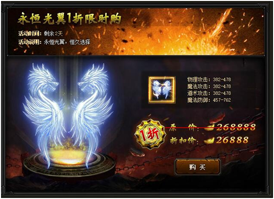 【活动内容】开服后,永恒光翼限时特卖,永恒光翼,恒久选择!
